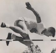 There were four of us, believe it or not, that tied for second as we had all cleared the same height prior to six feet, six inches. I thought for sure that I would get a Silver Medal because I never missed and I thought that wouldn’t go against me. We didn’t get the medals because of the rainy conditions. I guess when they first gathered to make decisions they didn’t even decide until a week later and I didn’t get a medal. I had taken the first jumps just to keep warm. Then a couple of weeks later they had a committee and I ended up getting a Bronze Medal. One of the other jumpers, the one from Illinois, had tied with me, but he didn’t even get a Bronze Medal. He had missed an earlier height so that must have counted against him. I never did find out exactly how they decided. I should have got the Silver Medal along with the guy who did because I never missed the other heights. I have received calls from others throughout my life – even a guy from Norway – who wanted my opinion on how it was decided. But anyhow, I don’t know how they decided.
